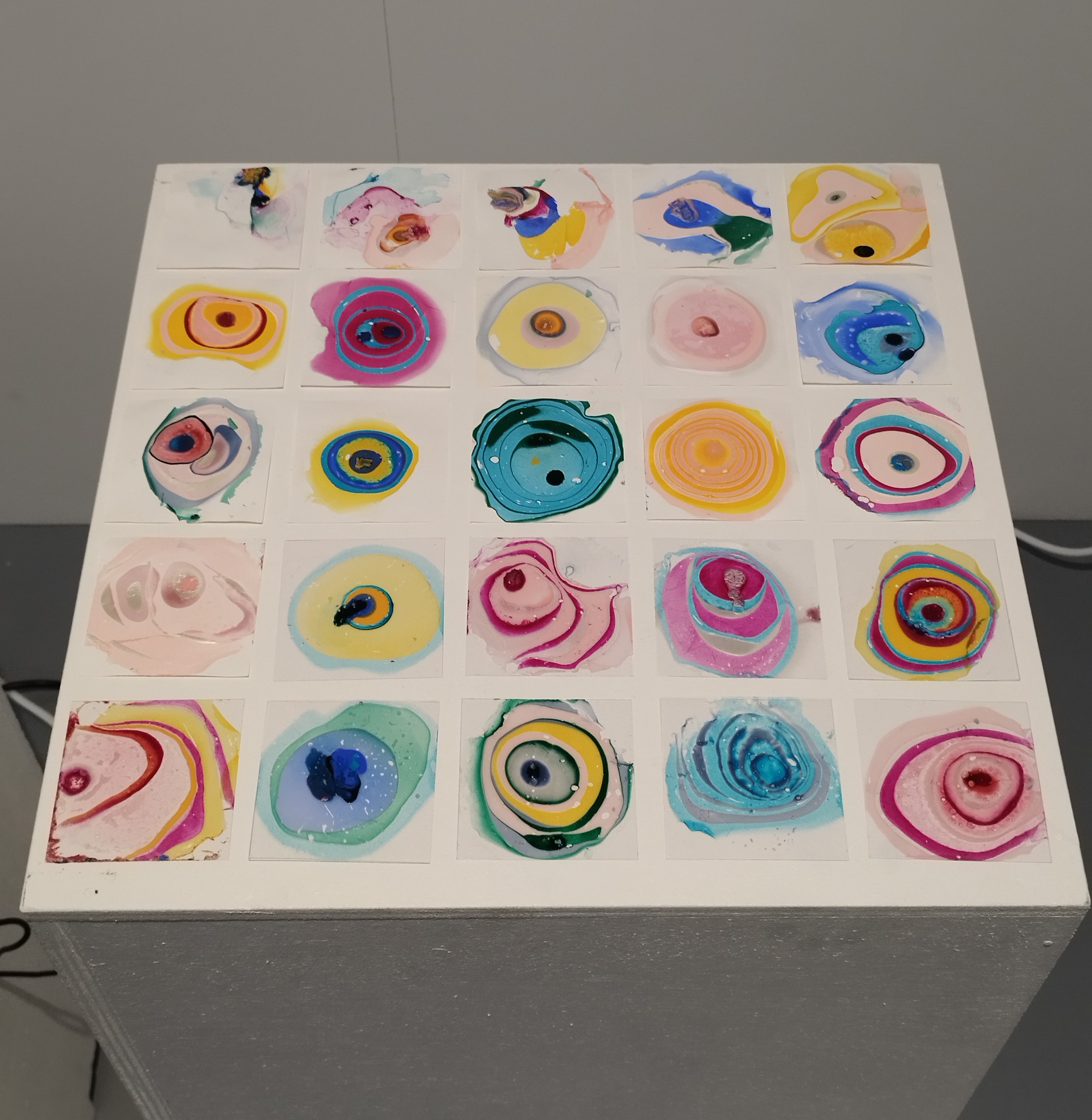 Using programming as a medium, the work allows users to generate and layer colored circles through mouse interaction. Each circle is randomly produced from a predefined palette derived from physical materials. As the circles overlap and animate over time, new color combinations emerge, creating evolving visual compositions.