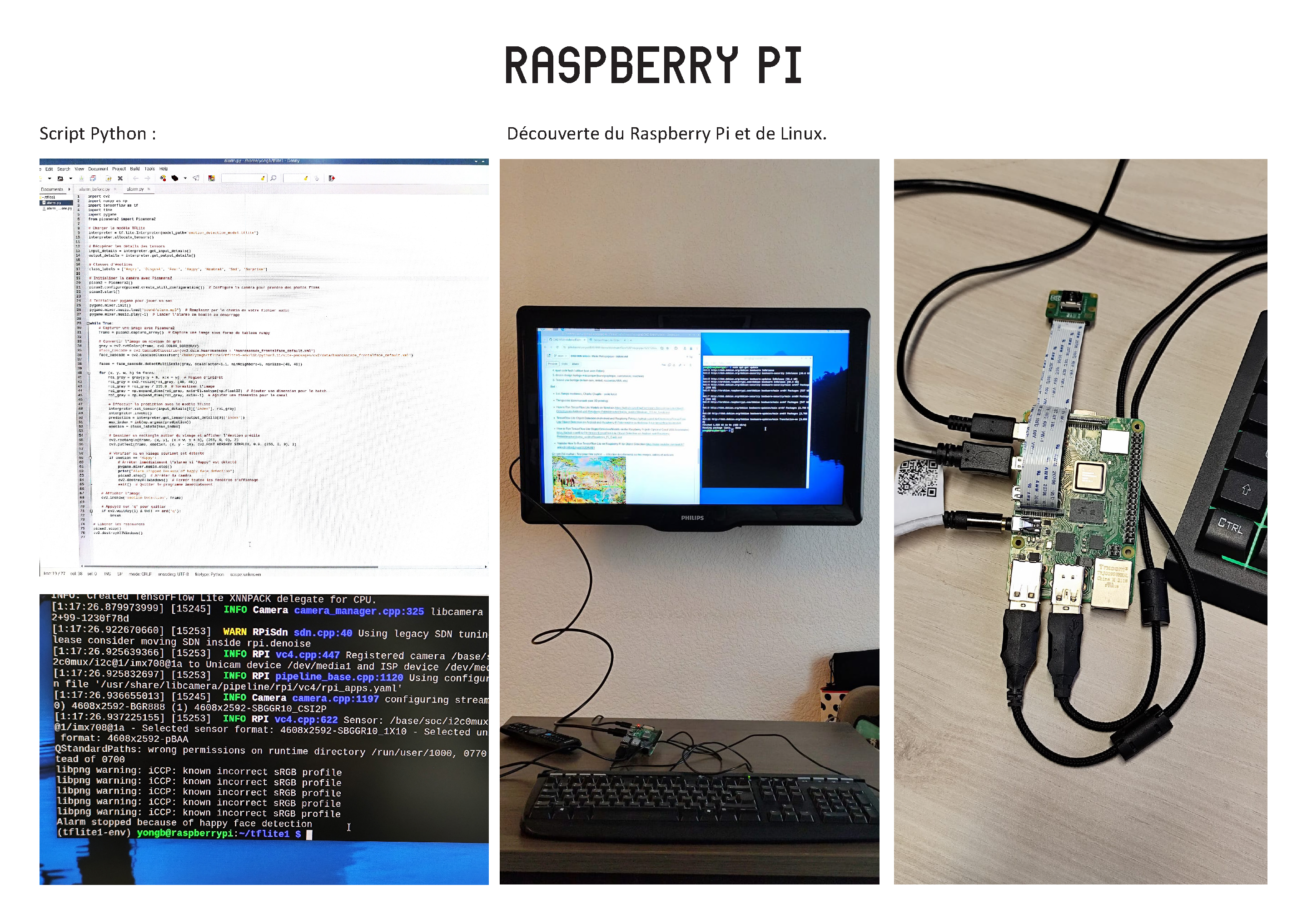To design it, I disassembled a real mechanical alarm clock in order to integrate a Raspberry Pi and a mini camera.