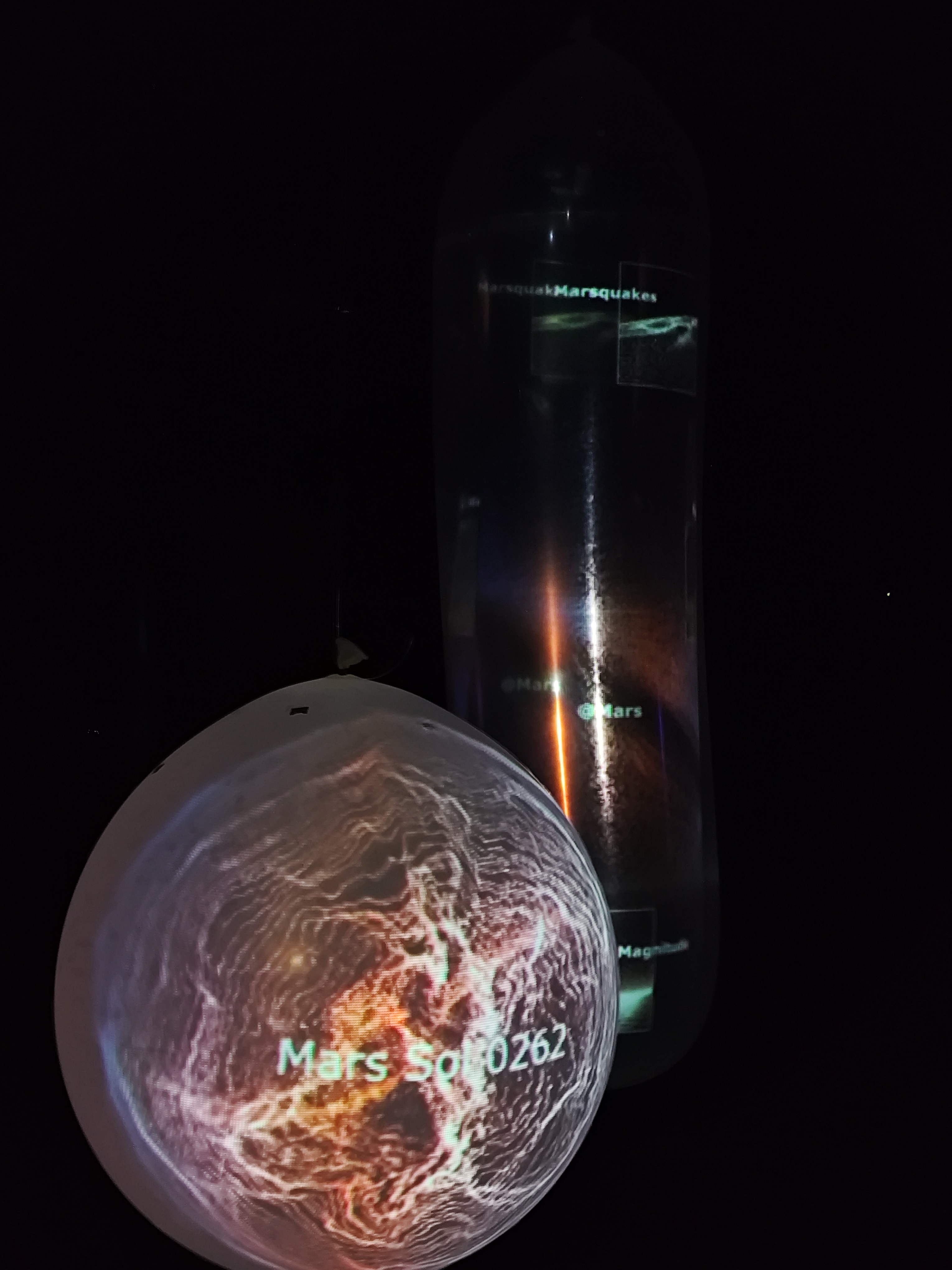 Magnetic field behavior is based on InSight magnetometer data. The total magnetic field strength is calculated and used to control the deformation of magnetic lines.