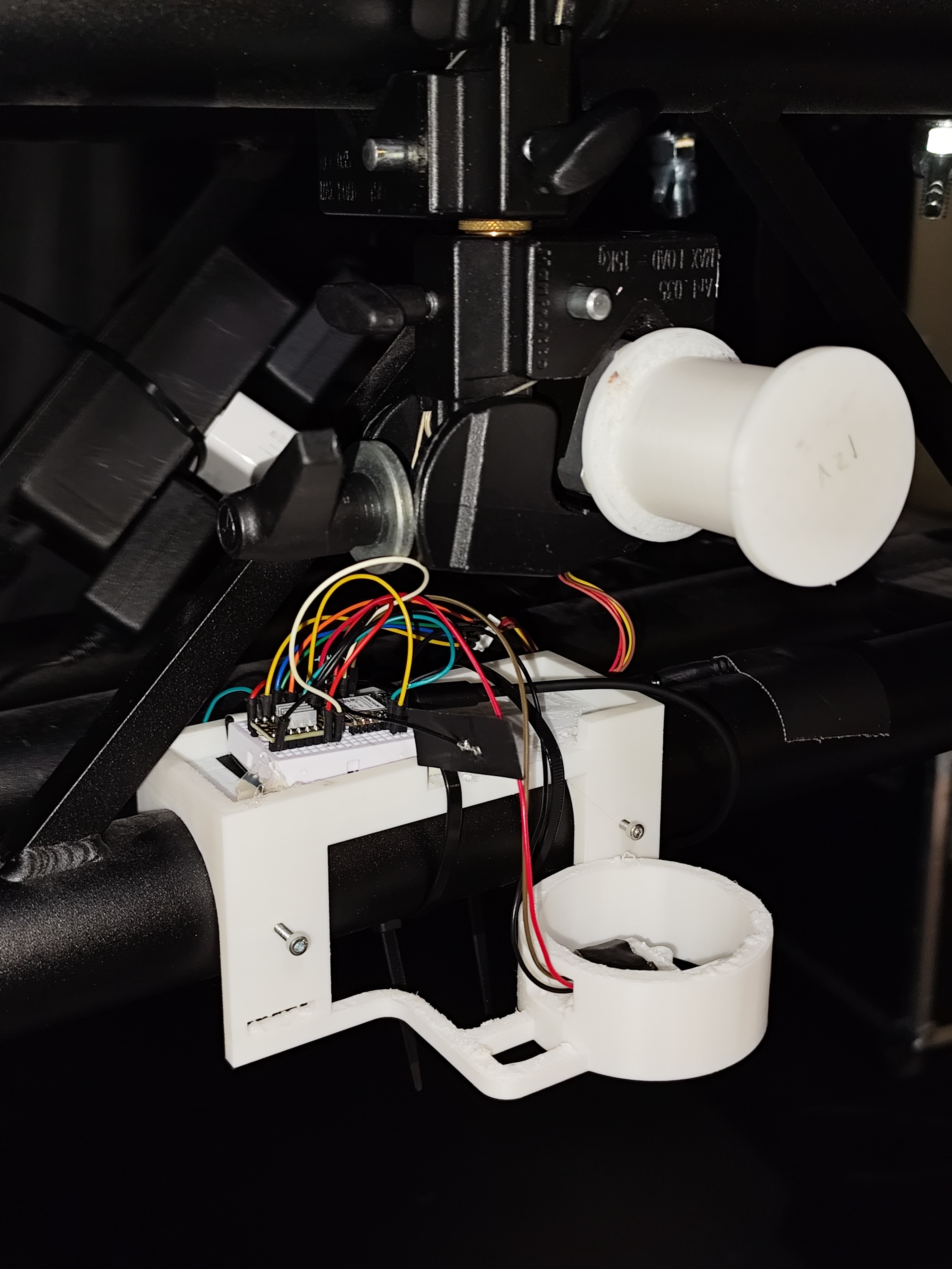 Each balloon is suspended from the ceiling and controlled by stepper motors. A 3D-printed wheel mechanism is used to regulate the height of the balloons, with all mechanical components housed in a ceiling-mounted structure.